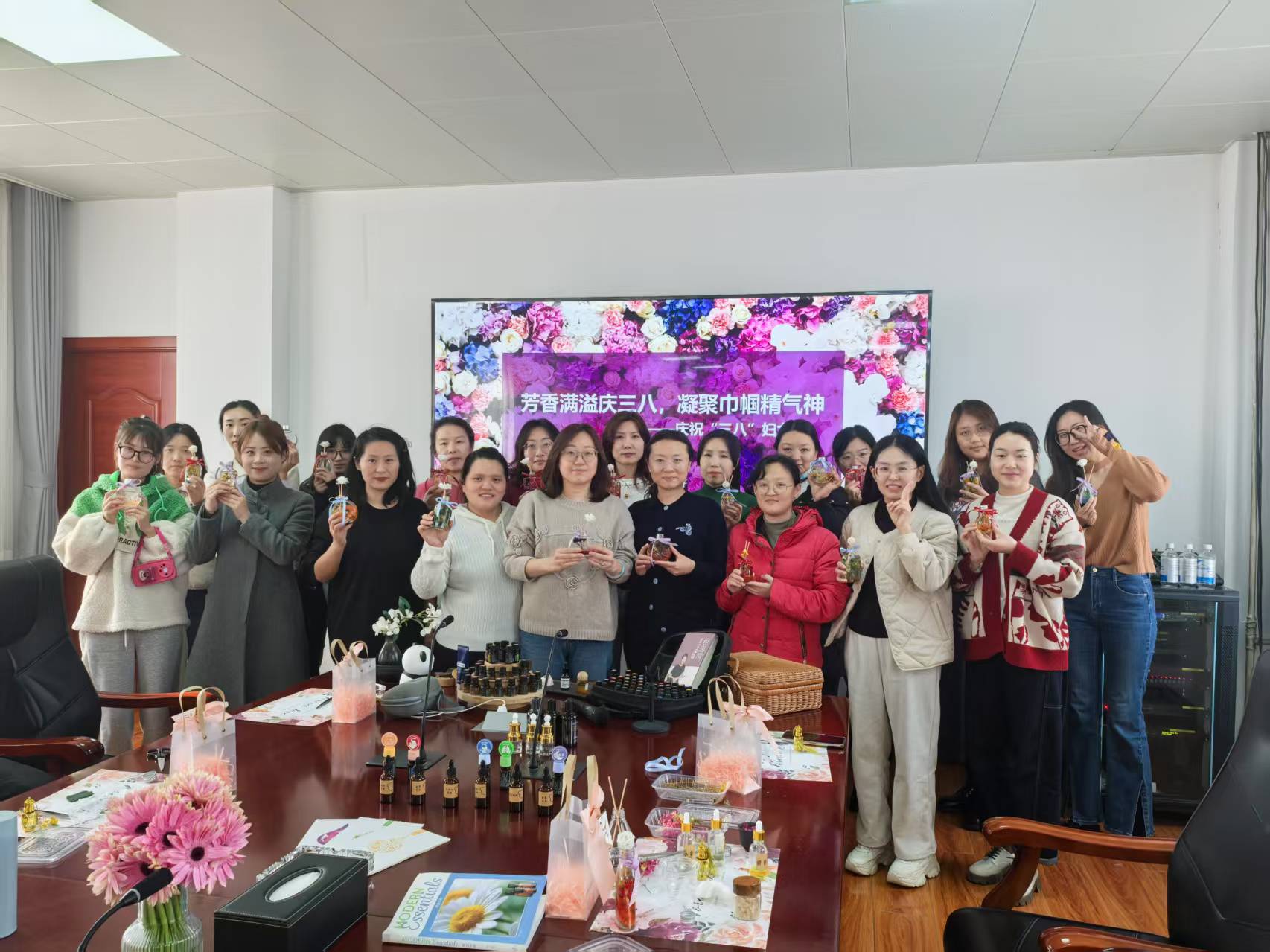 在第115個(gè)“三八”國際勞動?jì)D女節(jié)來臨之際,為豐富女職工精神文化生活,匯通集團(tuán)于3月7日下午精心組織了一場溫馨且充滿創(chuàng)意的DIY香薰制作活動,吸引了眾多女職工熱情參與?;顒蝇F(xiàn)場,工作人員精心準(zhǔn)備了豐富的材料,從各式各樣的香薰精油到精美的容器,一應(yīng)俱全。專業(yè)老師詳細(xì)講解了香薰的歷史文化、功效以及制作方法,并在舒緩的音樂節(jié)奏中帶領(lǐng)大家閉眼感受香薰精油的魅力,大家聽得津津有味。在香薰制作環(huán)節(jié),大家充分發(fā)揮自己的想象力和創(chuàng)造力,選擇心儀的精油,輕輕滴入容器,再小心翼翼地?cái)嚢瑁瑢⒏苫ā⑾懔系仍厍擅钊诤?,各具特色的香薰作品便在女職工們的巧手下誕生了,有的散發(fā)著清新的果香,仿佛把春天的果園裝進(jìn)了瓶子;有的
